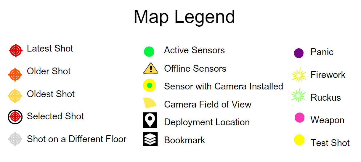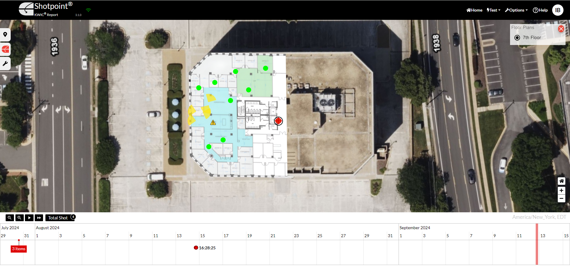 Press to view the map in real-time WARNING: The timeline must be in “play” mode for the map to update with new shots. Browsing the timeline or pressing pause causes the system to stop updating the map when a new report comes in. The system will still display an alert banner and make an alert sound when a new shot comes in, but the shot displayed on the map is one selected by the timeline.